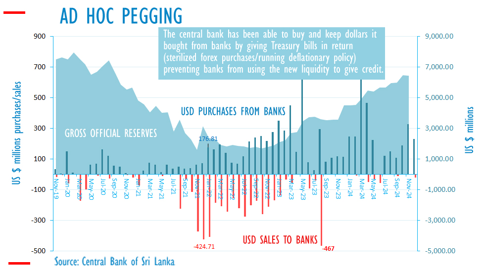 ECONOMYNEXT – Sri Lanka’s central bank has bought 2,841 million US dollars from banks on a net basis in 2024, official data showed, as the agency operated largely deflationary policy at an appropriate interest rate.